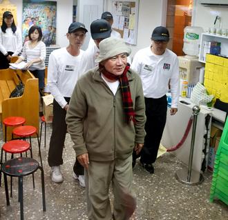 今日上午八點左右,林義雄緩慢步出靜坐區去廁所,面色已顯蒼白。圖片來源:臺灣《聯合報》