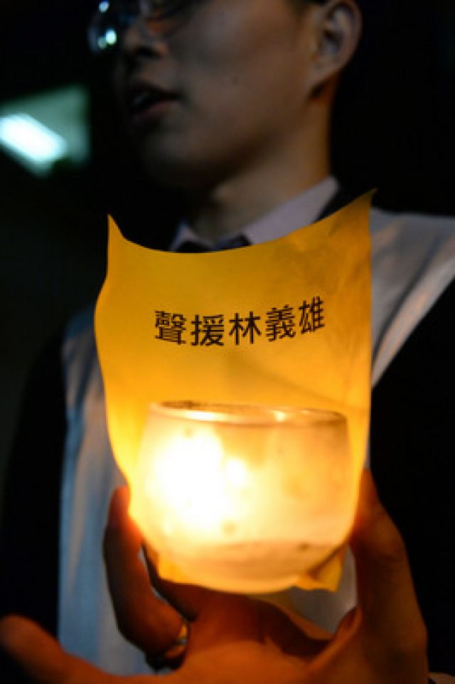 反核禁食的前民進黨主席林義雄28日到臺大醫(yī)院就醫(yī),晚間顧立雄等律師群到臺大急診室門口,點燈為林義雄祈福。(臺媒圖)