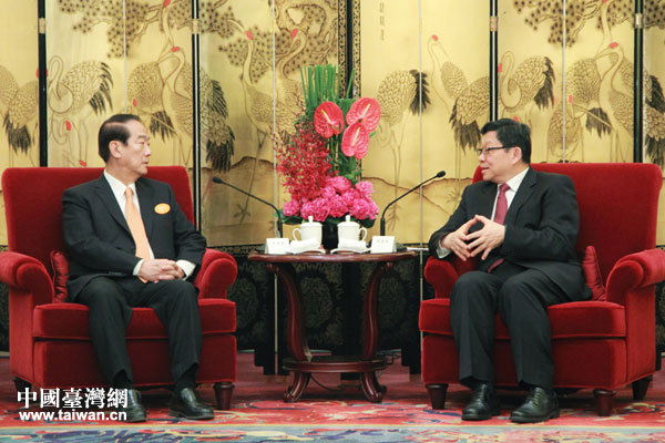 海協(xié)會(huì)會(huì)長(zhǎng)陳德銘7日上午在北京會(huì)見(jiàn)了宋楚瑜一行。(中國(guó)臺(tái)灣網(wǎng) 何建峰 攝)
