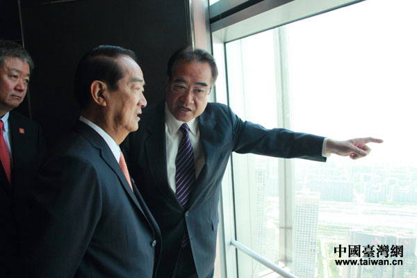 在與海協(xié)會(huì)會(huì)長(zhǎng)陳德銘會(huì)見(jiàn)前,親民黨主席宋楚瑜(中)在北京國(guó)貿(mào)大廈頂層參觀。(中國(guó)臺(tái)灣網(wǎng) 何建峰 攝)
