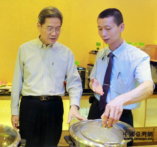 中共中央臺辦、國務(wù)院臺辦主任張志軍14日下午在浙江杭州考察臺資企業(yè)“素·繽紛”素食餐廳。(中國臺灣網(wǎng) 于斯文 攝)