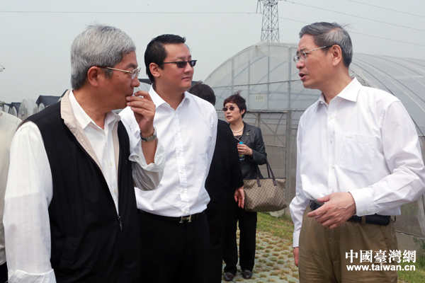 16日上午,中共中央臺辦、國務(wù)院臺辦主任張志軍考察浙江嘉興世合新農(nóng)村開發(fā)有限公司。圖為張志軍與臺灣農(nóng)業(yè)專家交流。(中國臺灣網(wǎng) 于斯文 攝)