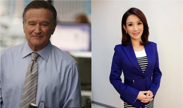 臺灣美女主播簡立喆(右)在臉書懷念羅賓威廉姆斯。(圖片取自臺媒)