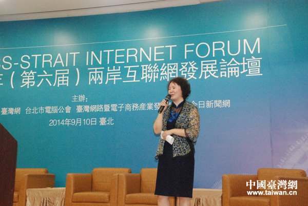 9月10日,2014年(第六屆)兩岸互聯(lián)網(wǎng)發(fā)展論壇在臺北舉行。中國互聯(lián)網(wǎng)協(xié)會秘書長盧衛(wèi)出席論壇并致辭。(中國臺灣網(wǎng) 劉瑩 攝)
