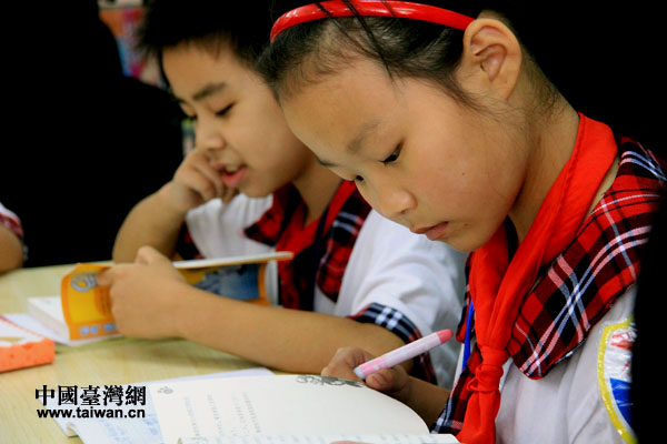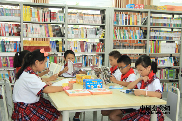 雅安漢源富林三小的“康師傅安康圖書館”中,孩子們沉浸在書籍的海洋中(中國臺灣網 李徽 攝)