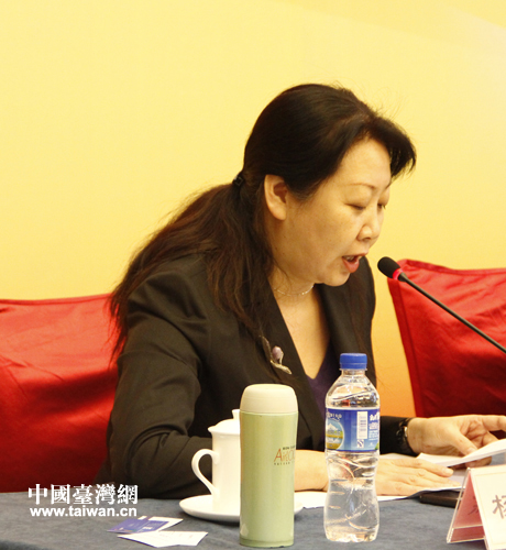 全國臺灣研究會常務副秘書長楊幽燕主持開幕式。(中國臺灣網 李杰 攝)