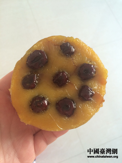 親戚家做的糕,個頭較小,內容豐富。(中國臺灣網 張玲 攝)