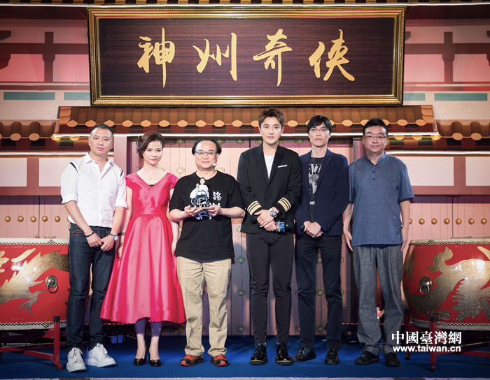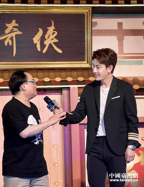 武俠宗師溫瑞安、當紅實力派偶像賈乃亮出席《神州奇?zhèn)b》影游聯(lián)動發(fā)布會。(中國臺灣網(wǎng) 高斯斯 攝)
