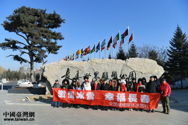 全國網絡媒體冰雪行采訪團在長春世界雕塑公園留念(主辦方供圖)