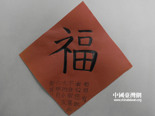 學生自己動手為老人們制作祝福賀卡。 (中國臺灣網發 尹珺攝)