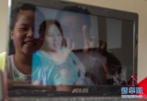 8月20日,在巴南區南彭街道將軍灣村,留守兒童楊渝(左)在大學生村官汪瓊的幫助下和母親視頻聊天。當日,重慶市巴南區200多名大學生村官來到結對幫扶的留守兒童家中為他們補習功課,讓他們和在外地的家長視頻聊天,并為孩子們進行心理輔導。本次活動還專門為留守兒童準備了一堂“收心”課,幫助孩子們提前適應新學期的到來。新華社記者陳誠 攝