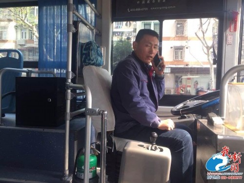 公交車司機打電話求助。