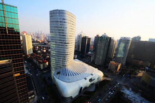 2013年12月27日,拍攝于上海市仙霞路遵義路交叉口,因設(shè)計(jì)外形酷似馬靴被網(wǎng)友戲謔為“馬靴樓”的“尚嘉中心”