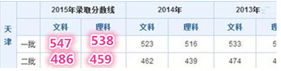 2015天津高考本科一批、本科二批錄取控制分數(shù)線