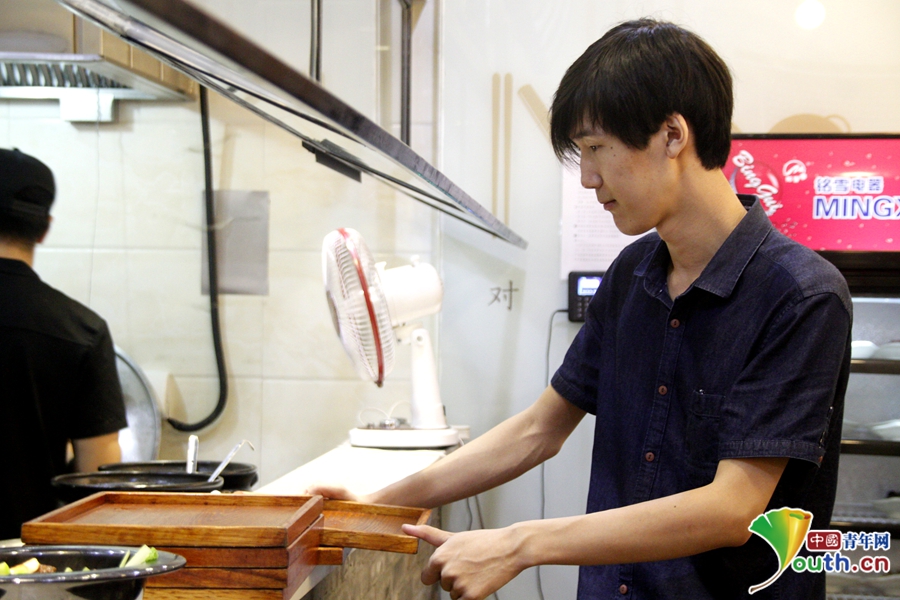 說起做面的原因,豆芽兒打趣說:“趙恒的重慶面做得非常好,吃過后,我們倆一拍板就定了重慶面。”雖然,決定貌似偶然,但是兩人的行動卻不是過家家。他倆專門去了趟四川,正經(jīng)的學了下重慶小面的做法。中國青年網(wǎng)記者 王婧 攝