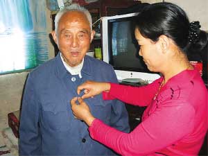昨天中午,記者慕名來到葛春霞家,前不久剛退休的葛春霞,正忙著給百歲公公端飯。令記者贊嘆 的是,百歲老人宋蓬來耳聰目明,思維敏捷,精神矍鑠。見到記者后,老人便滔滔不絕地直夸聾啞媳婦葛春霞。他說:“自從她進了我家的門,我就享清福,她把我當親生父母,無微不至照應我。