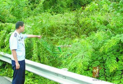 事發現場,就在思小高速公路位于勐養自然保護區內野象谷附近的495公里的里程碑處,只見高速公路由普洱駛往景洪的一側下行線的右側,留有長達20米的輪胎與地面摩擦的明顯痕跡,距剎車痕跡5米的地方,留有被損壞的車玻璃碎片和雨刮器等車輛其他部件碎片,撒落在長達20多米的地段。公路下行線右側的圍欄,已經被撞倒,有一處被撕開口的圍欄附近留有大象血跡,圍欄附近的草木也有被壓倒的痕跡。地上,清晰地留著野象由公路西片進出勐養自然森林的足跡。