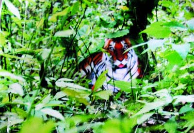 這是周正龍用數碼相機拍攝的第一張野生華南虎照片,也是10月12日陜西省林業廳在新聞發布會上提供給媒體的“虎照”(局部裁剪圖)