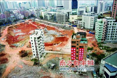 昨日,記者在施工現場看到,蔡珠祥夫婦的樓房基本已拆除完畢。剩下兩棟孤樓四周均已開始施工開挖地基。楊先生說,他與開發(fā)商基本達成一致意見,雙方有望最終通過協(xié)商解決此事。蔡屋圍最后的釘子戶可能會是張女士家。