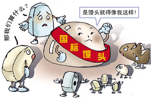什么叫饅頭?別以為這問題很弱智——最近,可是網(wǎng)上一大熱議話題。饅頭之所以在網(wǎng)上“躥紅”,始于最近有多家媒體稱,國(guó)家有關(guān)部門出臺(tái)了“饅頭國(guó)標(biāo)”,其中規(guī)定“饅頭必須是圓的”。一份有6437人參加的網(wǎng)上調(diào)查顯示,82.63%的人對(duì)此持異意。