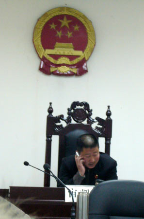 更讓人意想不到的是,原告正在作陳述時,審判庭上響起了悠揚的手機鈴聲。循聲望去,只見審判長已把手機掏出來開始通話,通話時間近1分鐘。被告幾次抬頭看到審判長根本沒有聽自己的陳述,“知趣”地停下來,庭審因而出現了短暫的中斷。據了解,在當地一些縣級法院,這種庭審怪象并不罕見。