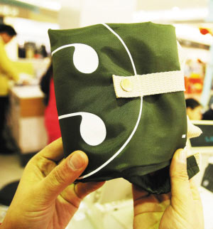 昨日下午,記者來到了佳世客東部購物中心,一樓服務臺前不少消費者爭相領取環(huán)保購物袋。記者看到,消費者領到的購物袋僅巴掌大小。“別看現在這么小,里面可是能做大文章哦!”家住閩江路的魏有美笑著說,她將布袋撐開,足有一個鍋蓋面那么大,兩面均印有佳世客的英文標識及一個跳躍的音符。“絲滑柔軟,又結實耐用,不光免費用,而且還可以憑此積分獲取獎品呢。”魏女士說。