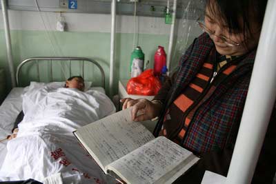 宋玉華取出一個(gè)小日記本,翻看著許巖兩年來的治療記錄,心疼地說:“有一次我拔牙的時(shí)候還疼得‘哎呀哎呀’的呢,可他做腰穿、骨穿時(shí),從未喊過一句疼,還總是笑著說沒事。”與許巖住在同一病房的其他患者家屬,也一再夸獎(jiǎng)許巖的堅(jiān)強(qiáng)和樂觀。