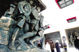 在普蘭店市唐房烈士陵園的入口處,兩座碩大的雕塑立在門兩旁,精心雕刻的各種獅柱石雕陵園內(nèi)隨處可見(jiàn),280位烈士的墓碑靜靜地安放在草叢中。紀(jì)念館中,原立憲從國(guó)內(nèi)各地拍攝的圖片被主人精心布展。歷史仿佛在人們參觀時(shí)凝固了:長(zhǎng)征、抗日戰(zhàn)爭(zhēng)、解放戰(zhàn)爭(zhēng)以及烈士事跡、名錄一一再現(xiàn)!坝20多位烈士的雕塑是我們根據(jù)原型雕刻的,有些部隊(duì)官兵看到這些英雄的雕塑,眼淚嘩嘩流!痹椊榻B,從免費(fèi)開(kāi)館的當(dāng)天起到現(xiàn)在,已經(jīng)有幾千位參觀者到陵園追悼烈士英魂。