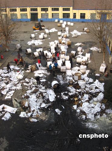 2008年2月7日大年初一中午,山東鄒平縣一印刷廠發(fā)生火災(zāi),119火警指戰(zhàn)員迅速趕到,將火勢(shì)控制,沒(méi)有造成人員傷亡及財(cái)產(chǎn)重大損失。據(jù)悉火災(zāi)是由于燃放炮竹引發(fā)的。圖為廠內(nèi)職工整理災(zāi)后物資。 中新社發(fā) 解碼 攝