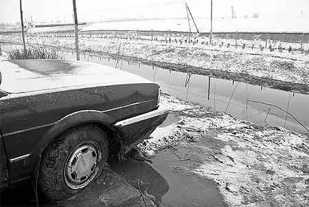 “當時我一聽就急了,車里還有一個人沒出來!”呂村派出所的民警孟振國并不會游泳,但他想都沒想,直接讓岸上的救援人員用繩子綁住自己,跳進了渠中。“水冰得刺骨。”冒著雪,孟振國摸索到了轎車邊。“我打開了一扇車窗,但摸了半天,也沒摸到人。”在車里,孟振國只摸到了一個書包。