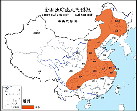 預計今天白天到夜間,內蒙古東部、東北中北部、華北大部、黃淮西部、江淮、漢水流域、江南北部以及四川東部、重慶、貴州大部、云南東北部將有雷電天氣,上述局部地區并有短時雷雨大風或冰雹等強對流天氣。