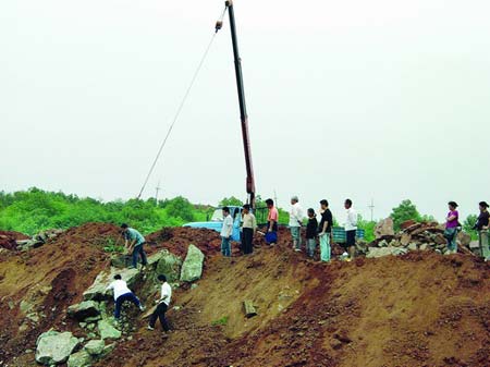 恐龍骨化石是6月23日在株洲市天元區(qū)蓮花小區(qū)二期工地發(fā)現(xiàn)的,當時一塊重約3噸的石頭被炸開后,石頭呈骨狀。6月27日上午,株洲市文物局局長席道合帶領工作人員趕至工地調查,對怪石取樣鑒定,并將相關資料圖片送中科院古脊椎動物研究所鑒定。