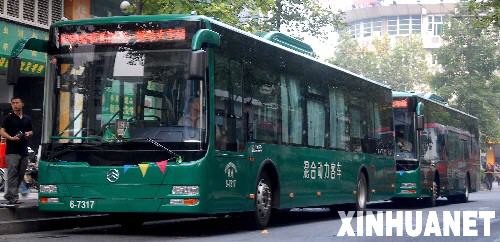 9月22日,一輛環保油電混合動力公交車正在運營。當日,30輛新型油電混合動力環保公交車正式投入杭州市公交K290路運營。這是杭州首條全部采用混合動力環保車型的公交線路。(圖片來源:新華社)