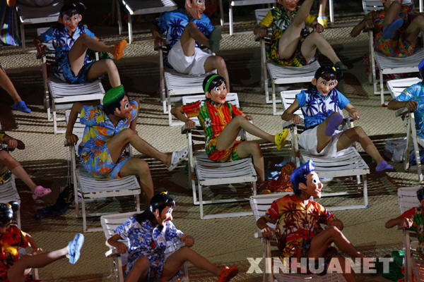 《印象·海南島》是繼北京奧運會、殘奧會開閉幕式后,張藝謀、王潮歌和樊躍創作出的首個印象系列作品,也是繼《印象·劉三姐》、《印象·麗江》雪山篇和《印象·西湖》之后的第四個印象系列作品。《印象·海南島》將試演一個月,經過修改及完善,于4月中旬舉行的博鰲亞洲論壇期間正式公演。新華社記者 李明放 攝