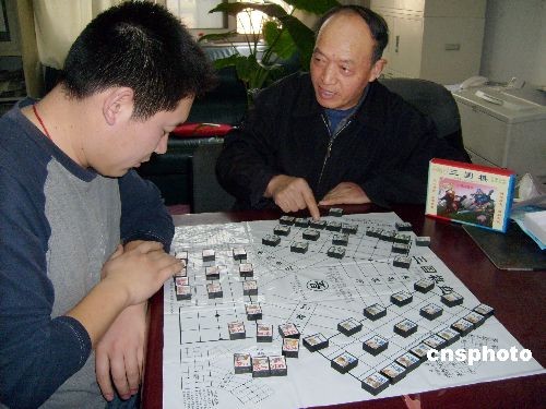 棋盤上畫的是三國鼎立,棋子則是由曹操、劉備、孫權和一些中國古代三國時期的人物組成,下棋的時候還能學習三國知識,認識三國人物。日前,在發明者魏樹愛的家中,他向來訪者演繹了一場“三國群英傳”。