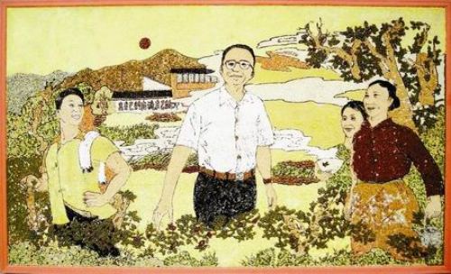 在棗樹村一農家院落前,一幅寬3.05米、高1.83米的五谷雜糧畫呈現于記者面前:神情親切的溫總理位于畫面中央,兩側是重新露出笑臉的村民,他們或手握鐵鏟似乎正在勞動,或手提茶壺想敬上一碗熱茶……畫中每個人的神情,都透著深深的感激之情。