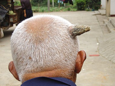 八旬翁頭上長“角”(王為民 楊柳震 張戰斗 攝)