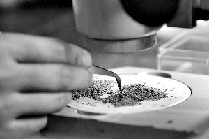 用顯微鏡挑選后的沙子還要由專家分析,以獲取更多信息。