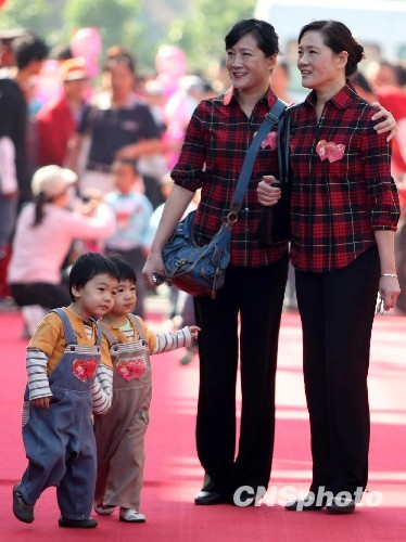 同樣的身高和相貌,再配上相同的穿著,500余對雙胞胎昨日相聚紅領(lǐng)巾公園,參加第六屆雙胞胎文化節(jié)。其中300多對雙胞胎的年齡在5歲以下,最小的只有4個(gè)月。