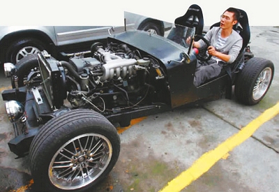 “半年前我一個好朋友興趣大發(fā),準備自己造車,首先弄個車架、發(fā)動機和手動變速箱……”昨日,網(wǎng)名為“圣之夜”的網(wǎng)友在四川某汽車論壇上發(fā)帖稱,他的朋友制作了成都首輛DIY(自己動手)漂移車。該網(wǎng)友上傳了一組反映該汽車組裝全過程的照片。此外,還有一段該車不久前在金港賽道上玩漂移的視頻。從照片中記者看到,這是一輛酷似老爺車的黑色敞篷車,汽車引擎、油箱、車座等全部裸露在外,車座是賽車椅子,車座兩旁沒有安裝車門,真可謂全敞篷。