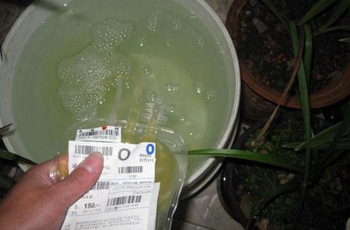 7日晚,在某蘭花交易論壇,網友“來來回回”發帖:《看看我的肥料哈高蛋白的營養品哦》。帖子中,“來來回回”上傳了自己拍攝的用血漿做肥料的全過程。