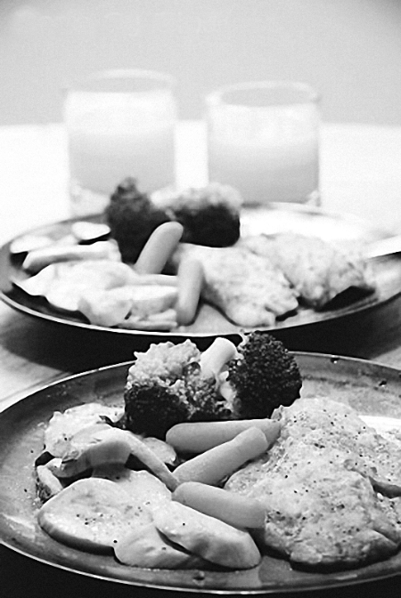 正餐包括一道冷盤、一份湯和三道熱菜:翠汁雞豆花湯、中式牛排、清炒茭白蘆筍、烤紅星石斑魚。餐后甜品為一道點心和一道水果冰淇淋。