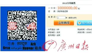 淘寶上,有賣“方舟船票”的,有賣“方舟直達解放牌貨車車票”的,有用谷歌地圖追尋方舟在地球上的停靠點的。一名網友1000萬元叫賣“方舟船票”最為火熱,不少網友回帖詢問能否打折、如何鑒別真?zhèn),還有詢問有否包含災難后重建送指定城市戶口。