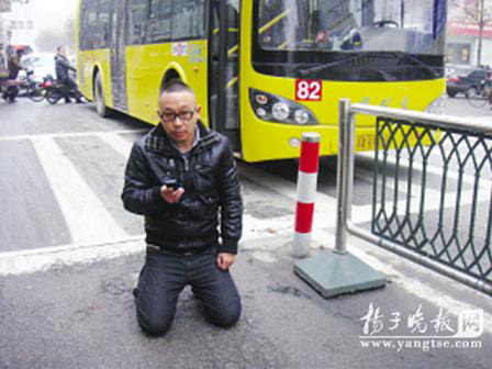 昨天(12月9日)下午,一輛82路公交車剛剛駛離站臺(tái),一乘客突然在車廂尾部摔倒,并稱自己受傷。司機(jī)懷疑該乘客“碰瓷”敲詐,哀求乘客出來(lái)證明自己無(wú)責(zé),看不少乘客陸續(xù)離開(kāi),他竟跪倒在馬路上,懇請(qǐng)乘客留下作證。四五位乘客被他的誠(chéng)意感動(dòng)了,愿意留下作證。司機(jī)隨后再次在公交車上跪倒,感謝乘客。