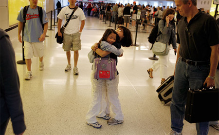 兩姐妹分別后在機(jī)場(chǎng)見面