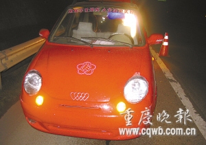 “它是轎車外型,摩托車"內臟"!彼緳C張某說這話時掏出殘疾證,強調他駕駛的是加了鐵殼殼的三輪摩托車。他坦言,車是前段時間在主城區買的,由于是新車,便在高速公路上試起機械性能——想知道到底能開多快。