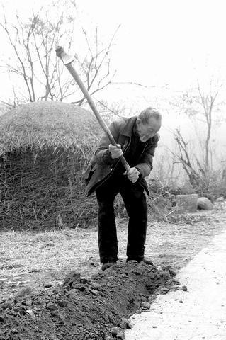 見(jiàn)到劉志光老人時(shí),老人正揮鎬在自家房前挖自來(lái)水管道。原來(lái),村里對(duì)原有老化的自來(lái)水管道進(jìn)行改造,老人閑不住就自己干起來(lái)。如果不是同行的人介紹,誰(shuí)也不敢把他當(dāng)成年逾百歲的老人。