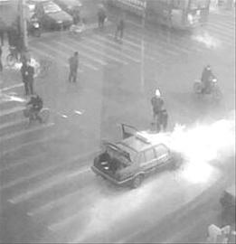 下面一堆人幫著救火。之后,又來了3臺消防車,把火給撲滅了。陳先生說。參與救火的李先生說,當時這輛出租車正由東向西行駛,突然就著了。當時四五個過路人跑過來,抱著雪塊就往車上扔,其中還有個老太太。路邊超市的5個工作人員也過來幫忙,還有人撥打了119。