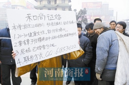 3日,一光頭男子,身穿僧袍,腳踩黑色皮鞋,在鄭州二七廣場舉牌稱“和尚征婚”。