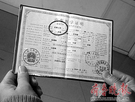 呂先生說,2009年3月,他去濟南市燕山派出所報戶口,不料戶籍工作人員認為這個名字怪異,不符合現有法律規定,不能以此給孩子上戶口。呂先生隨后去了濟南市公安局,“那里也說不行。說根據婚姻法,子女要么隨父姓,要么隨母姓,不帶姓不能落戶。還說這是省公安廳一個規定里面的,非要我給孩子改名字!